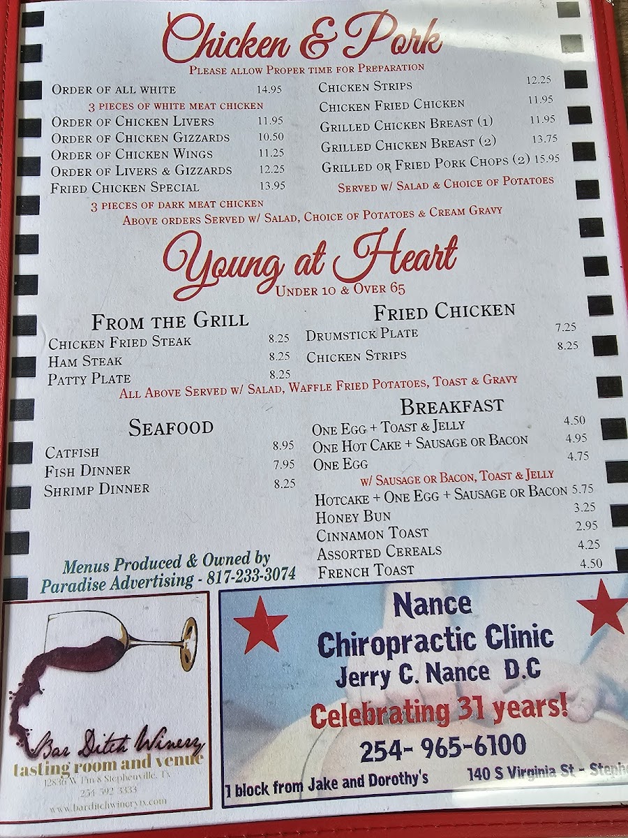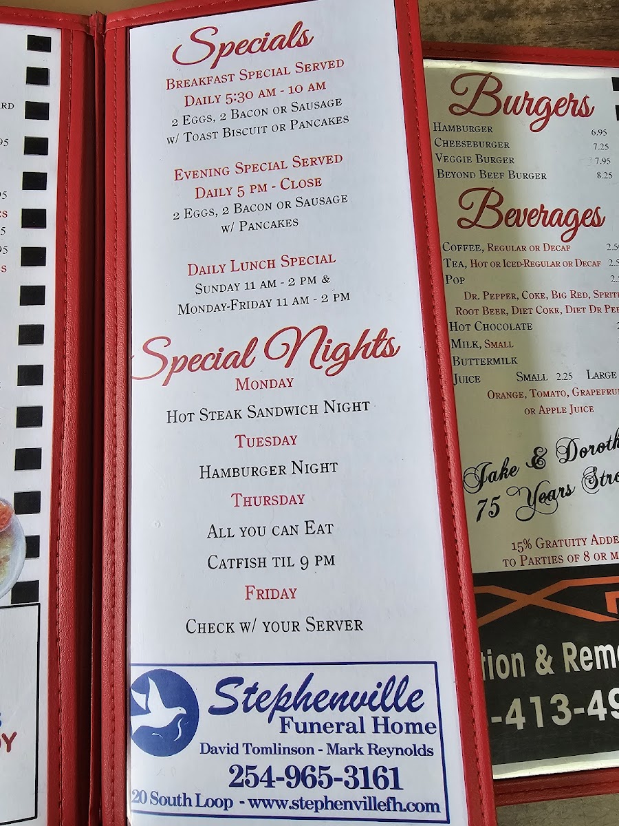 Welcome to Jake & Dorothy's Cafe, a beloved cornerstone of Stephenville, Texas, dating back to 1948. This quaint diner exudes nostalgia, capturing the charm of yesteryear while serving up heartwarming Texas comfort food that feels just like home.